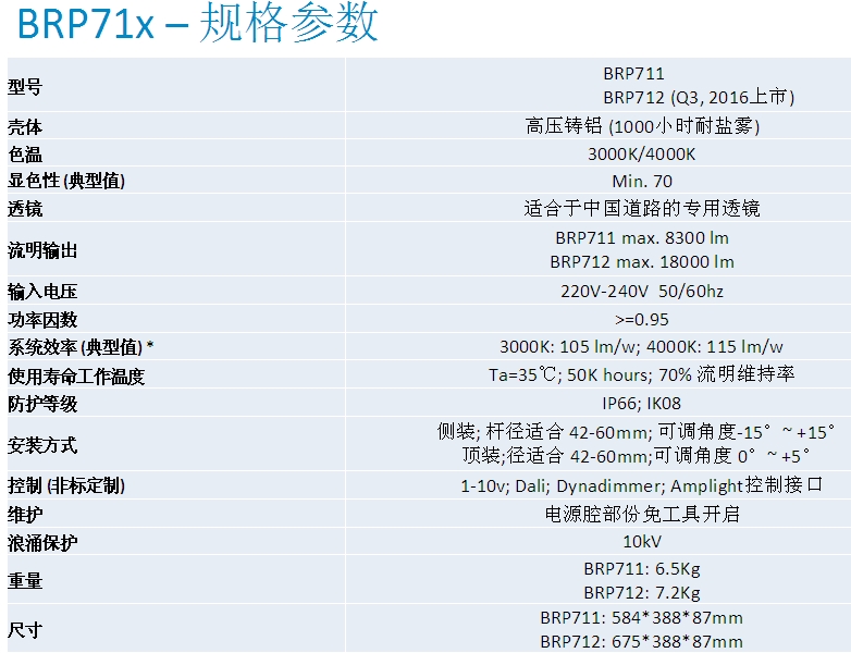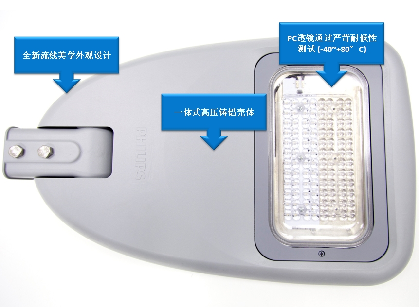 美是人類一貫的追求,道路照明也不例外。人們希望路燈能夠提供可靠光亮的同時(shí),燈具本身也有優(yōu)美的外觀。飛利浦LED路燈BRP711/BRP712帶來全新的流線美學(xué)外觀設(shè)計(jì),助力呈現(xiàn)城市優(yōu)雅之美。與此同時(shí),燈具采用高壓鑄鋁殼體,1000小時(shí)抗鹽霧噴涂及10KV抗浪涌保護(hù)器確保了優(yōu)異的可靠性。為中國道路特點(diǎn)專門設(shè)計(jì)的透鏡確保了配光的安全性和舒適性。頂裝和側(cè)裝兩種安裝方式配合使燈具能夠適用于各種應(yīng)用場合。